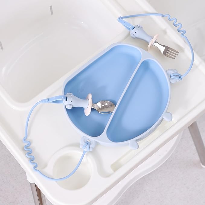 סט כלי אוכל לתינוק שעשוי מסיליקון עמיד ובטוח לשימוש